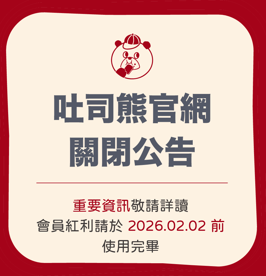【重要公告】吐司熊官方購物網站即將關閉,會員紅利點數請於 2026.02.02 前使用完畢